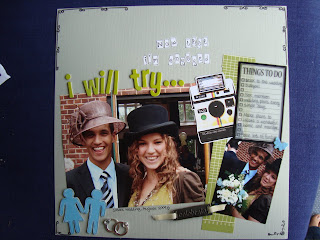 Here's a very autumnal layout and i love the background paper which is from the Nutmeg range by Cosmo Cricket, there stuff is so cool!!! The little photo in the bottom left corner is a message i wrote in the condensation of Davids window and reads 'I love David more than scrapbooking'.